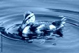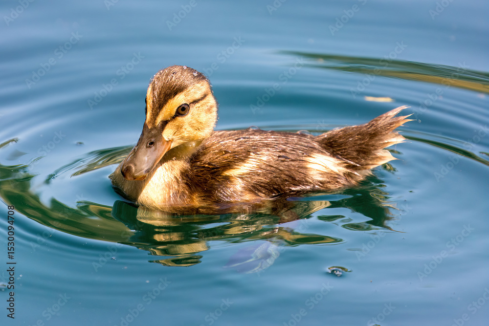 Mallard duckling swimming in a pond. Las Palmas Park, Santa Clara County, California.