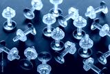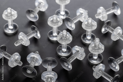 Plastic screw for plexiglass, plywood and advertising structures. Black background.