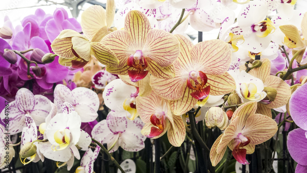 Orchid flowers. Moth or Phalaenopsis orchids, beautiful colorful background.