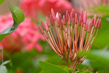 A beautiful pink tropical West Indian Jasmine flower with buds on long stems about to open