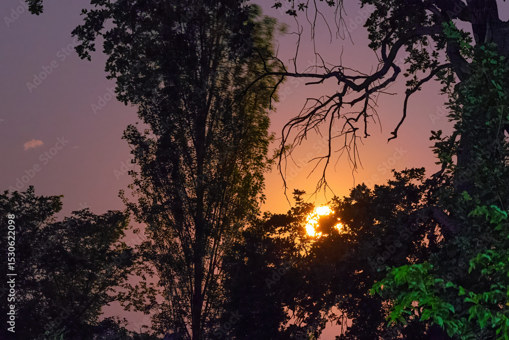 Full moon rising over trees