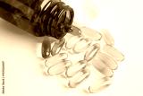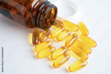 Fish oil or Cod liver oil gel in capsules with omega 3 vitamins, supplementary healthy food.