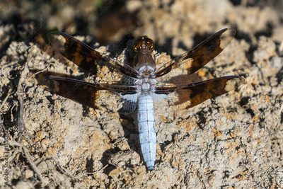 Common Whitetail Dragonfly adult male perched by the pond. Joseph D. Grant County Park, Santa Clara County, California, USA.