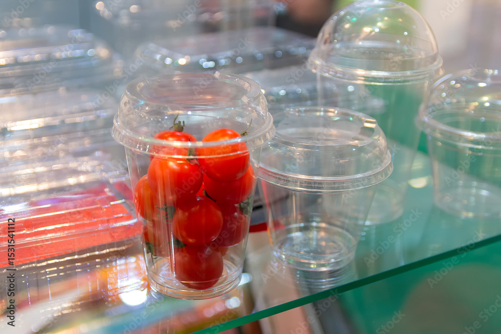Variety of food packaging in the display case