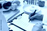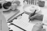 Chemical substance check list for chemical food residues in laboratory. Control experts inspect quality of fruits, vegetables. lab, find prohibited substances, contaminate, Microscope