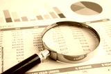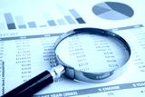 Magnifying glass on charts graphs paper. Financial development, Banking Account, Statistic, Investment Analytic research data economy.