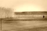 Jezioro w zachodzącym słońcu, spokojni widok.