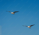 Seemöwen am blauen Himmel, Göhren, Rügen, Deutschland