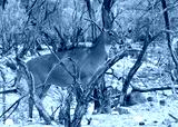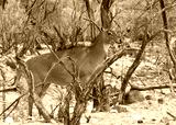 The nilgai or blue bull (Boselaphus tragocamelus) is the largest Asian antelope and is endemic to the Indian subcontinent. Only males possess horns. In desolate tundra looking to viewers right.
