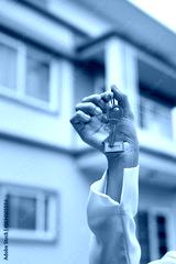 lease, rental and selling home. Real estate agent hold key for new house or real estate. rent house, Sales, loan credit financial, insurance, Seller, dealer, installment, buy, sell, move in