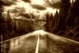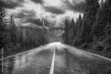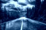 Unwetter mit Regen und Blitz auf Strasse