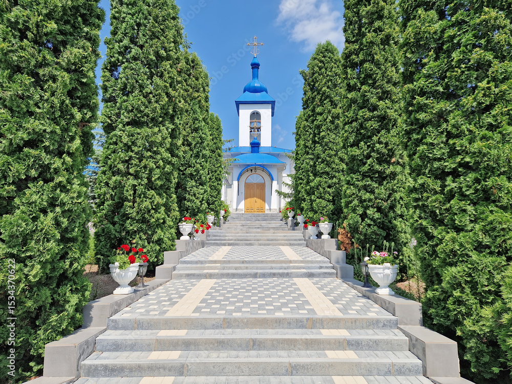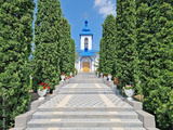 Ulmu Monastery of Saint Theodora of Sihla in Moldova. Christian Orthodox church with a distinctive architectural style traditional for eastern Europe culture