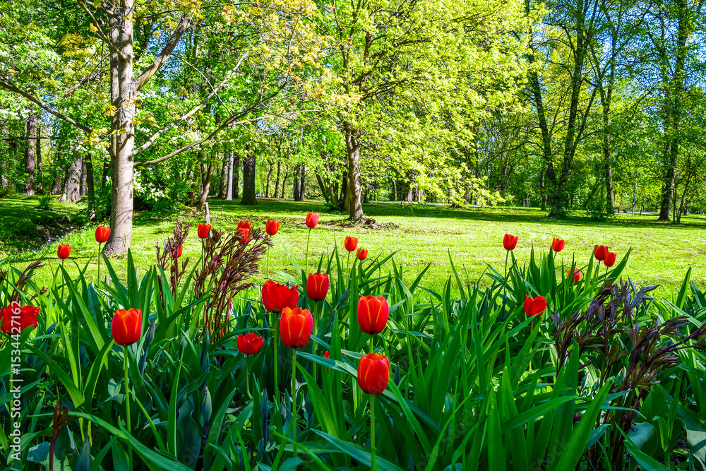red tulips in the park