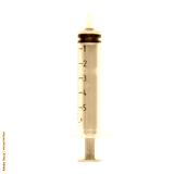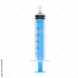 Medical syringe with blue liquid and measurement marks on transparent background