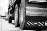 Heavy Duty Snow Plow Truck Close-Up on Icy Road, Winter Maintenance Equipment