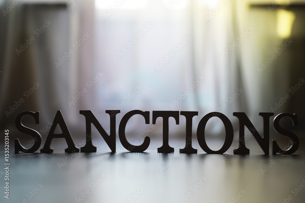 Sanctions Concept: Bold Black Letters Displayed Against Blurred Background in Sunlit Room