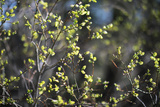 Close-Up of Blossoming Tree Branches with Fresh Green Leaves in Springtime