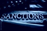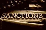 Sanctions Concept with Word SANCTIONS on USA Flag - Political and Economic Implications