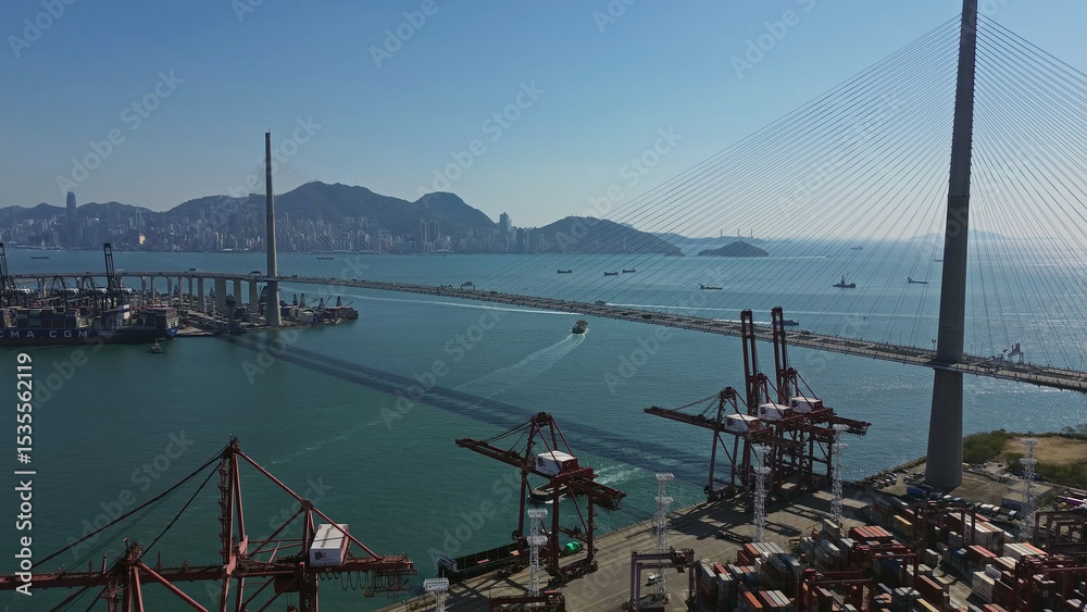 Stonecutters Bridge and commercial container port