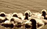15.06.2025 Białystok Polska. Słoneczny dzień nad wodą i młode łabędzie.