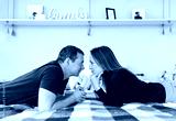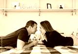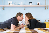 Content young couple smiling happily at each other while lying face to face in their bed together