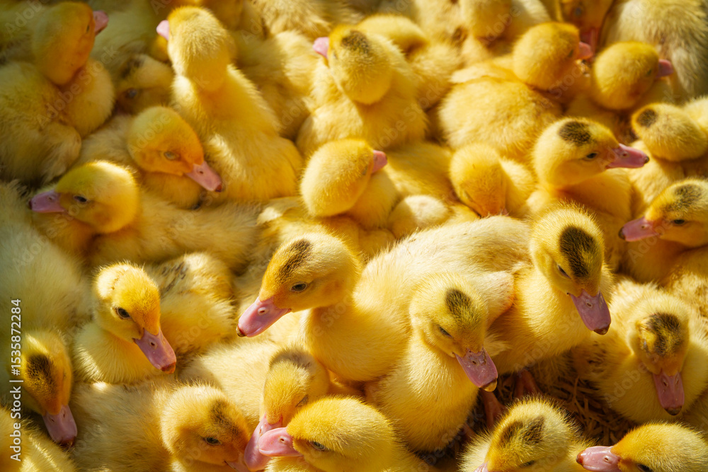 Fluffy Yellow Ducklings in a Group on Straw | Puszyste żółte kaczuszki w grupie na słomie