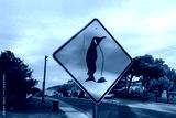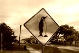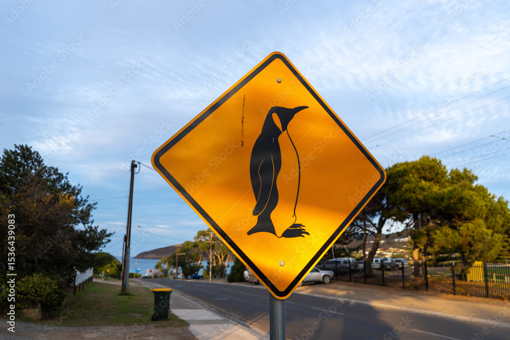 Penguin crossing warning sign on a coastal road, Kangaroo Island