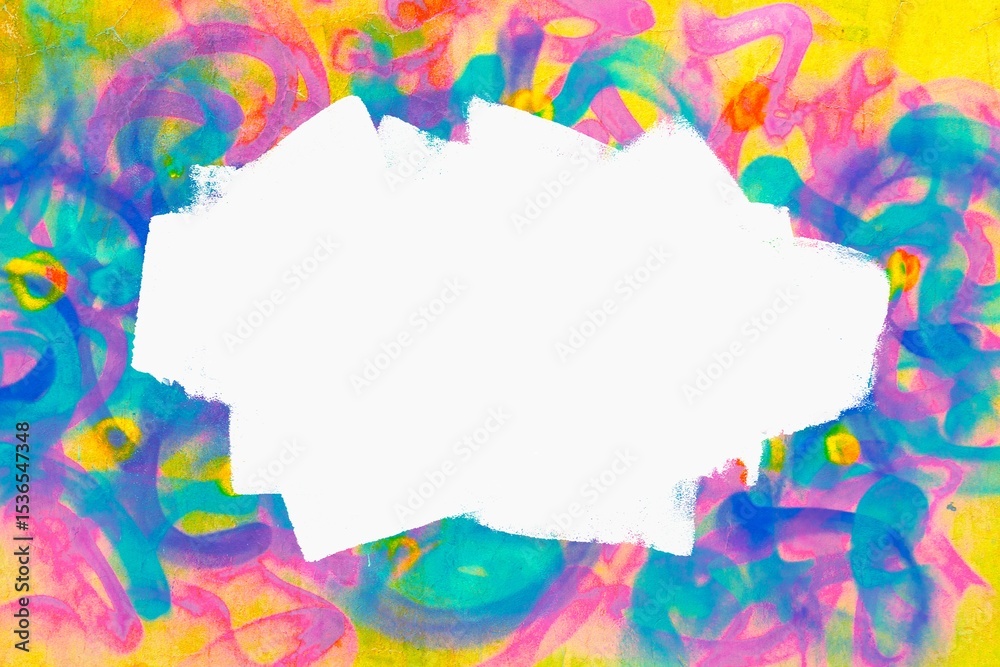 Colorful abstract neon pink, yellow, blue graffiti wall background with white brushstroke copy space. 90s, Y2K style, artistic street style posters, digital art, modern banner, creative flyer, cover