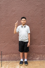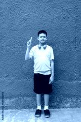 Teenager Boy Portrait Against Plain Wall in Natural Light
