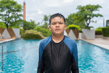 Teenage boy ready to swim in swimming pool