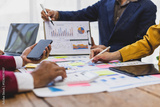 Businessman analyzing marketing and financial chart on desk. Businessman meeting with financial advisor, discussing financial situation analysis and business investment plan.