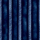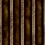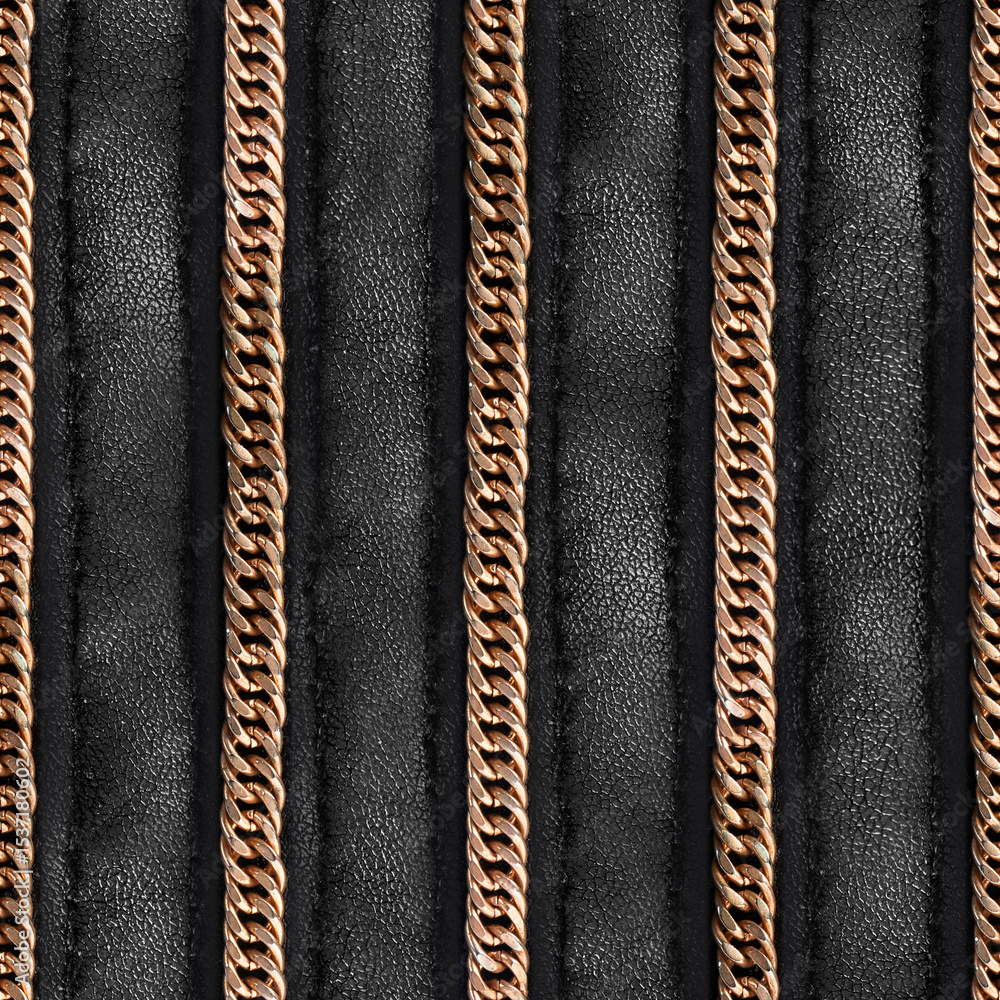 Seamless 4k photo texture material of black worn leather stitched surface with golden chains.