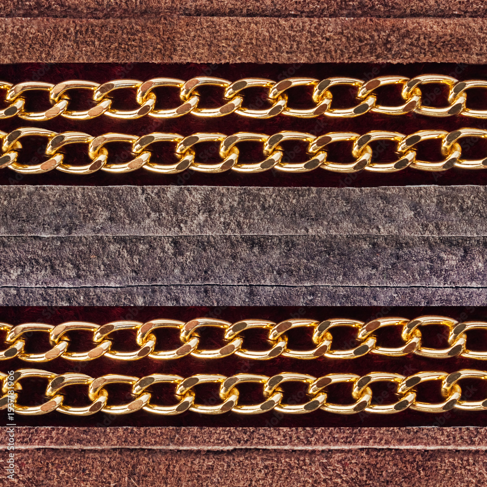 Seamless 4k photo texture material of overlayed brown and red suede leather straps with chains.