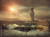 Lighthouse on the sea under sky