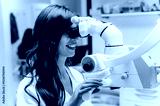 Portrait of a young female dentist working behind modern dental equipment in a clinic.