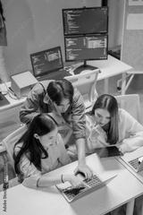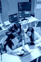 Professional computer engineer working on a new software technology design in the office Night, focus or programmer review search engine process, software or IT database development