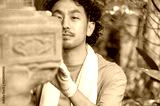 白い手袋をした男性が石灯籠の細部を見つめながら真剣なまなざしで確認するメンテナンス作業
