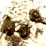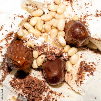 Ice cream with chocolate and nuts.Ice cream with pine nuts.Ice cream with chocolate chips.
