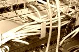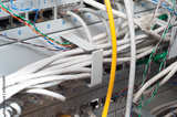 Network LAN cables close-up in the mounted server cabinet. Sloppy wiring