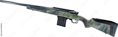 Bolt action rifle with a green and tan camo stock