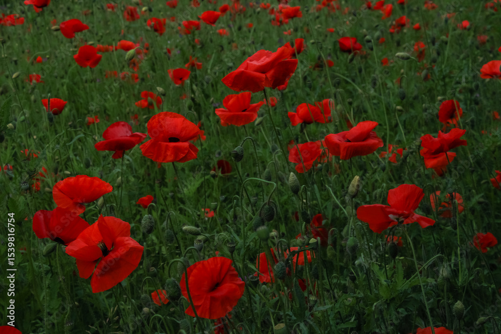 18.06.2025 Białystok Polska. Wiosenny czas i makowe pole w odcieniach czerwieni.