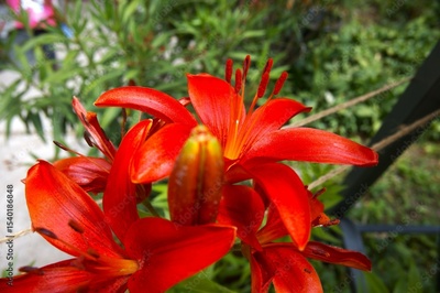 Orange lily flower in the garden close up.