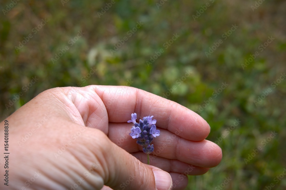 Lavender flower inhand in the nature for background.