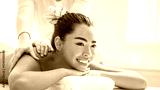 Relaxing Massage. Young asian woman getting classical body treatment at spa salon, lying on comfortable table with towel under head, beautiful korean lady pampering herself with beauty procedure.