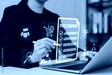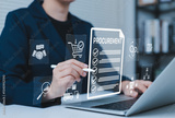 Procurement management Concept. Businessperson using procurement checklist representing procurement, logistics, inventory, supply chain, vendor, acquisition, warehouse, and purchasing processes.