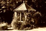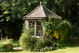 Cheshire England UK. 01.06.2025. Small summer house in an English country garden.