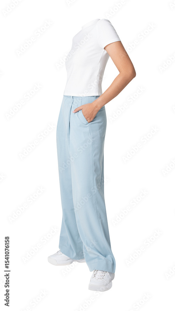 Headless woman png white t-shirt, minimal, casual fashion image, transparent background