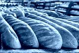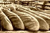 Freshly baked bread rolls cooling on wooden trays in a bakery after exiting the oven