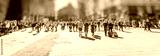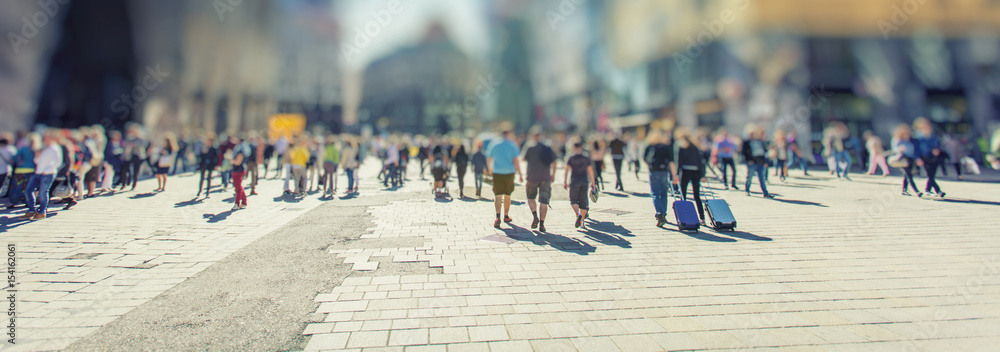Crowd of anonymous people walking on busy city street