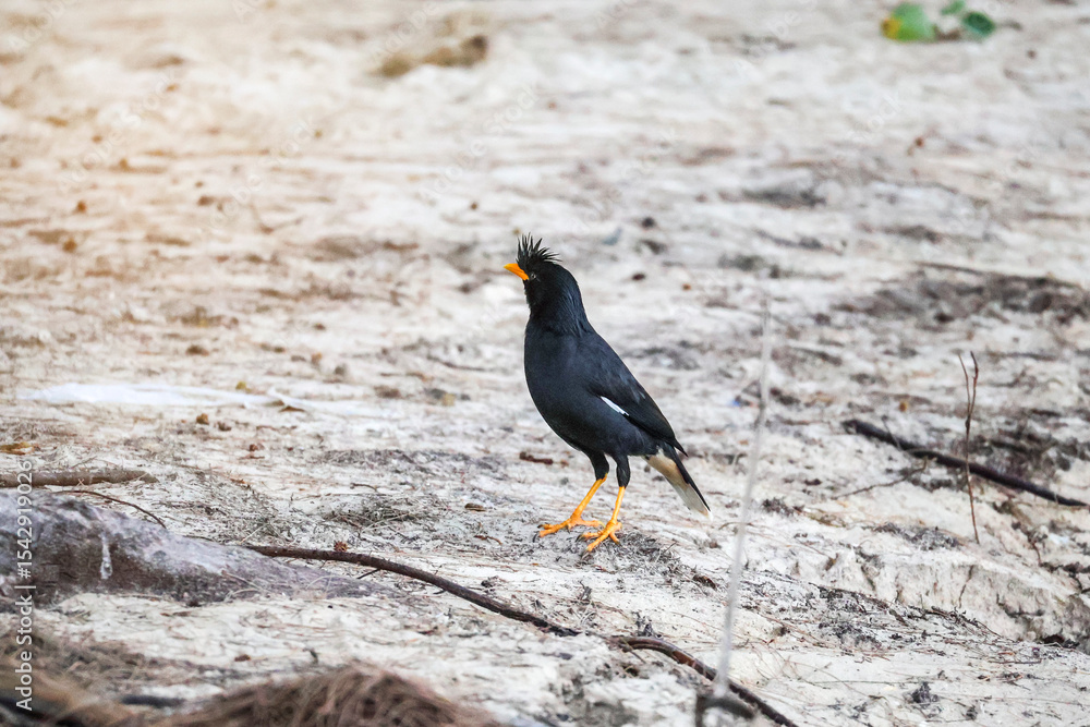 Great myna (Acridotheres grandis) seeking insects and seeds